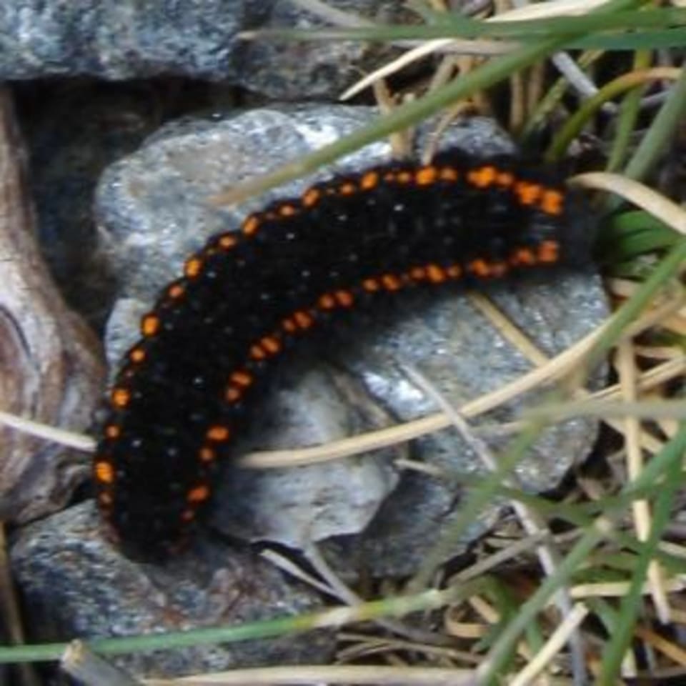 Whilst going up Mulhacen the other day I saw this little fellow crawling by, so took a picture of him and when I got back I posted the picture on a web forum I use to help identify all things nature to Spain. Turns out its a rare butterfly and very much protected (glad I didnt tread on it) and is endemic to the Sierra Nevada. It is a Parnassius Apollo butterfly.