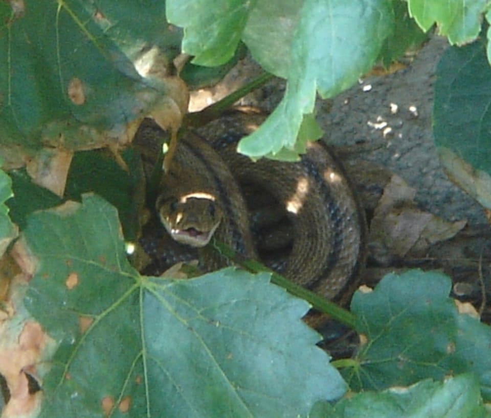 Just found the husky Khumbu playing "dare" with this little creature in the back garden! About 1.5ft in length but didnt try to unravel it to find out! Gave a big hiss at me when I went to investigate. I've since found out it's called a "Ladder Snake" or to give it it's spanish/latin name ........ "culebra de escalera". It is called this because of the ladder markings down it's back. Non-venemous but scary!